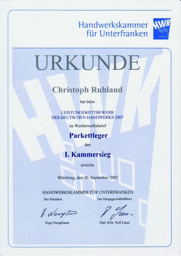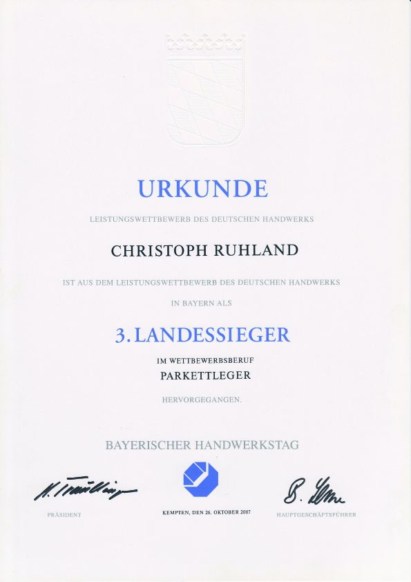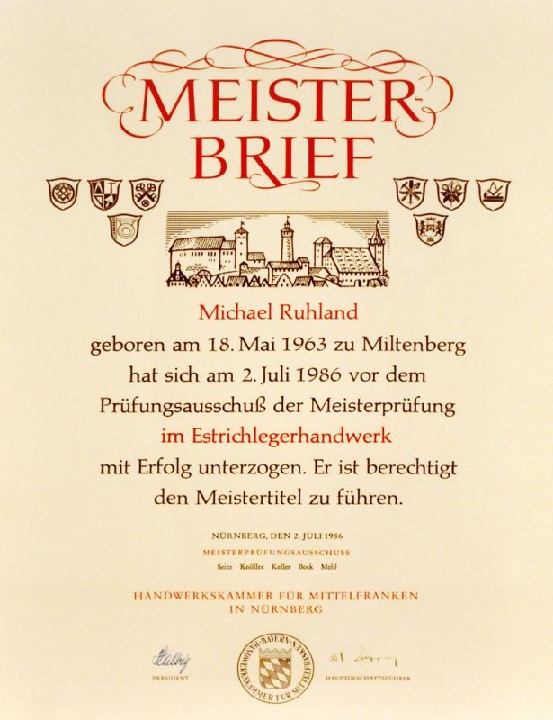 Öffentlich bestellter und vereidigter Sachverständiger für das Estrichlegerhandwerk, Parkettlegerhandwerk und das Bodenlegergewerbe