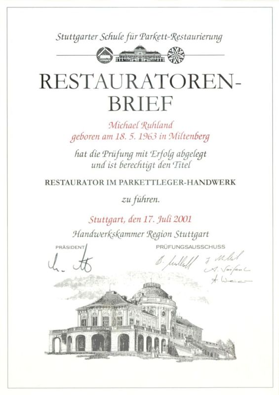 Restaurator im Parkettlegerhandwerk,