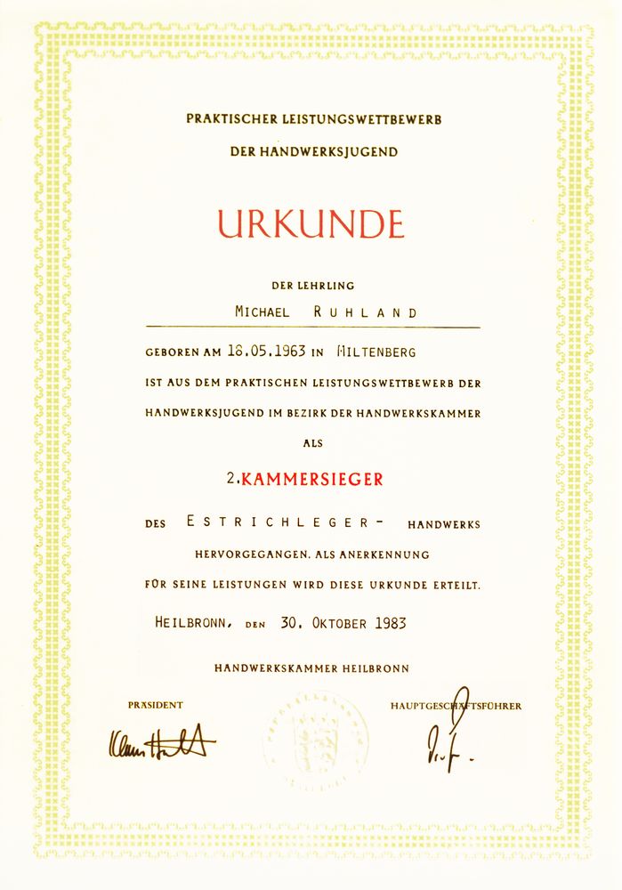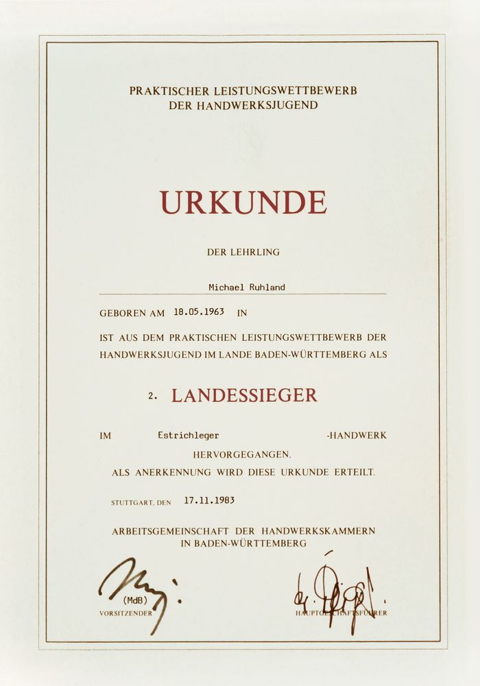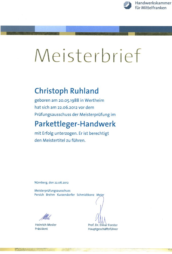 Öffentlich bestellter und vereidigter Sachverständiger für das Estrichlegerhandwerk, Parkettlegerhandwerk und das Bodenlegergewerbe